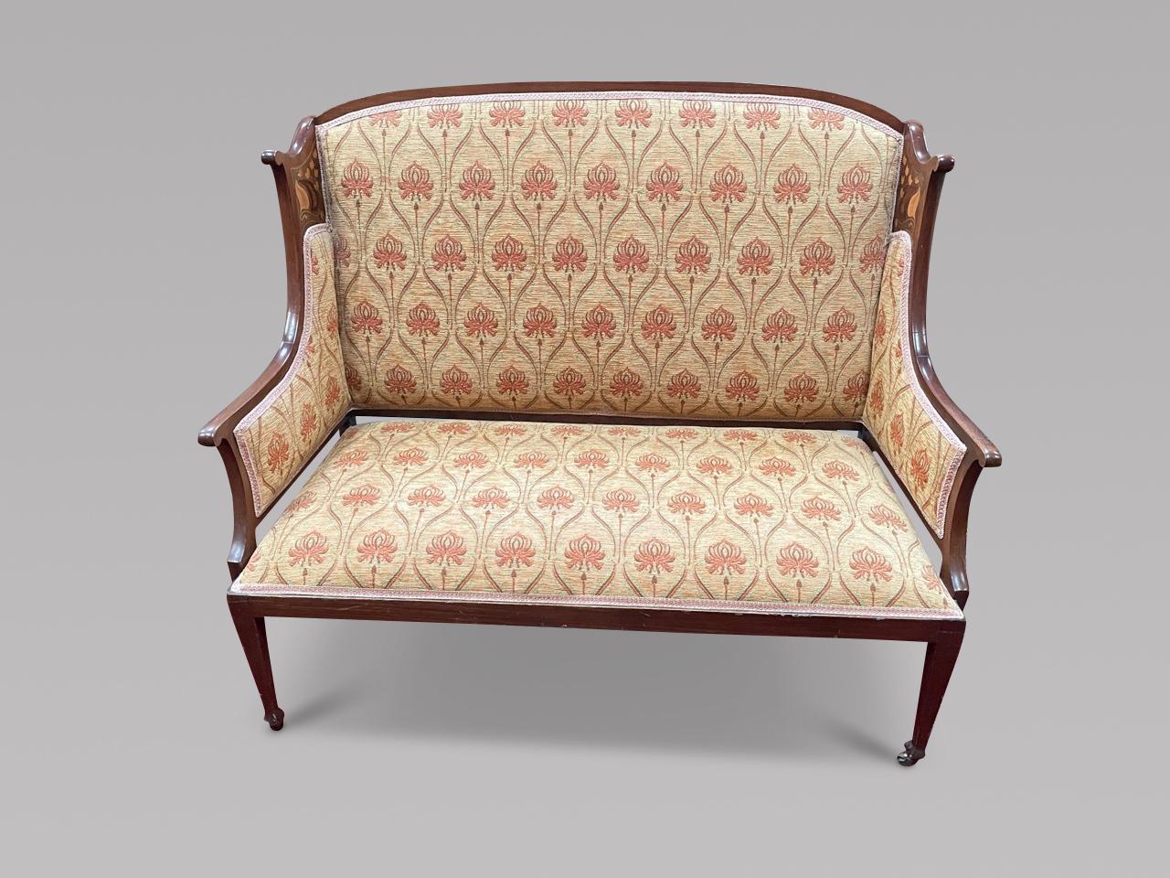 Art Nouveau Mahogany Inlaid Salon Settee