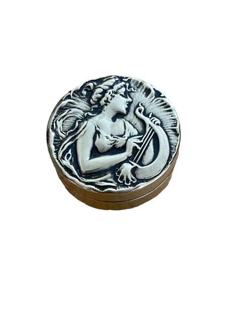 Art Nouveau Maiden with Lyre EPNS / Silver Plated Lidded Pill / Trinket Pot c.1900