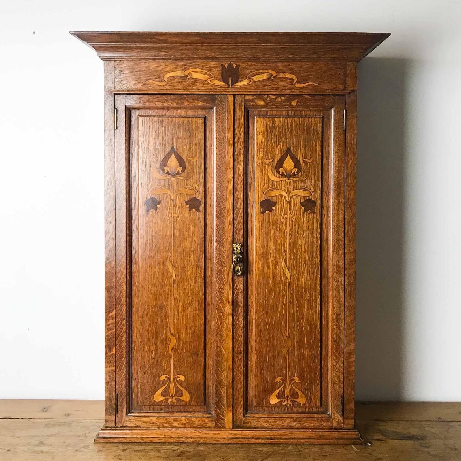 Art Nouveau Oak Wall Cupboard with Decorative Inlay