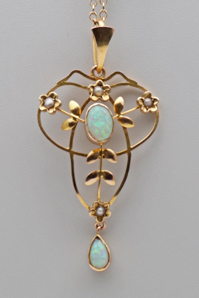 Art Nouveau Opal and Pearl Gold Pendant and Chain (1 of 2)