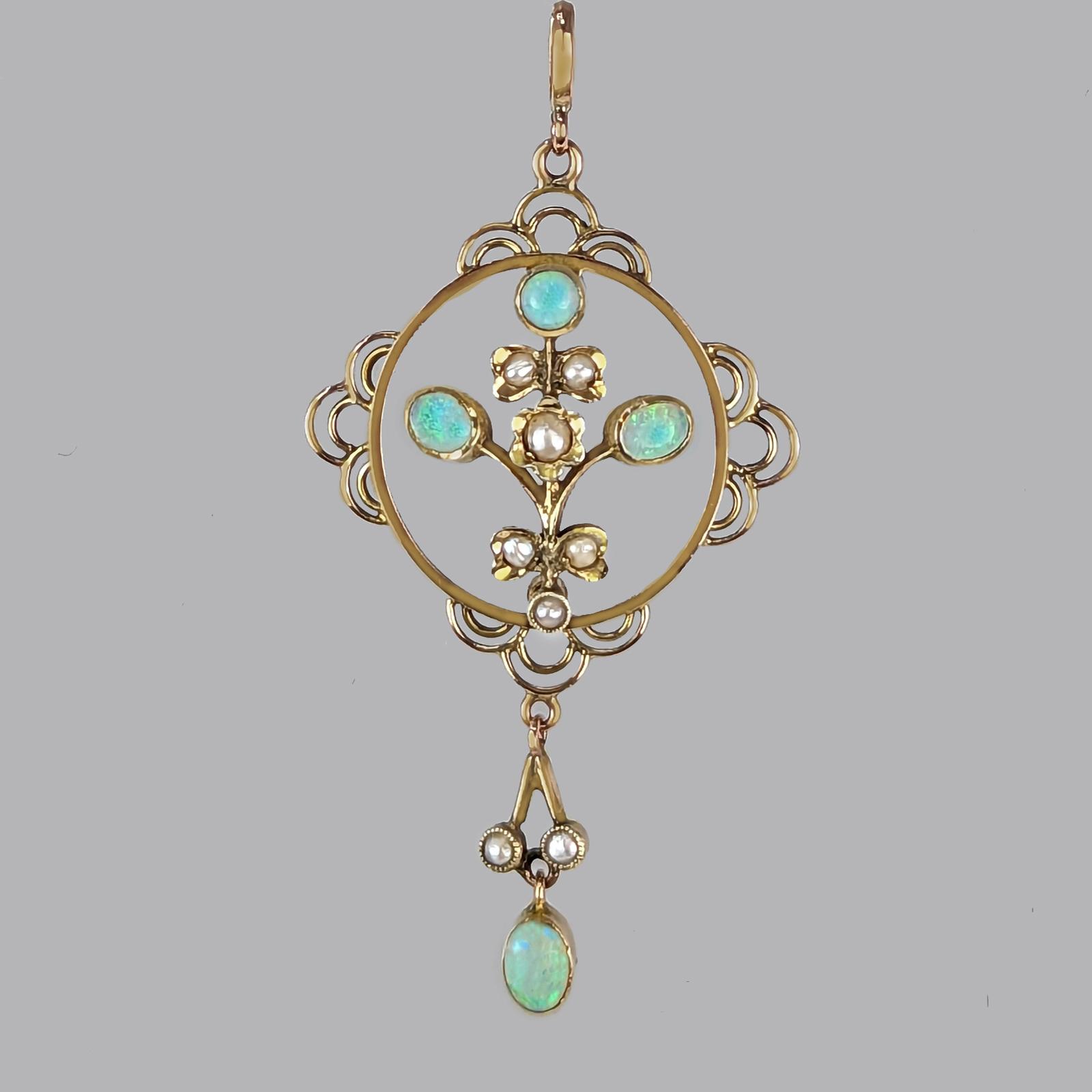 Art Nouveau Opal Pendant 9ct Gold Seed Pearl and Opal Antique Victorian Pendant (1 of 4)