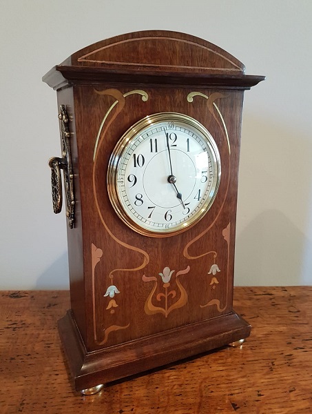 Art Nouveau Period Antique Mother of Pearl Inlaid Mantel Clock