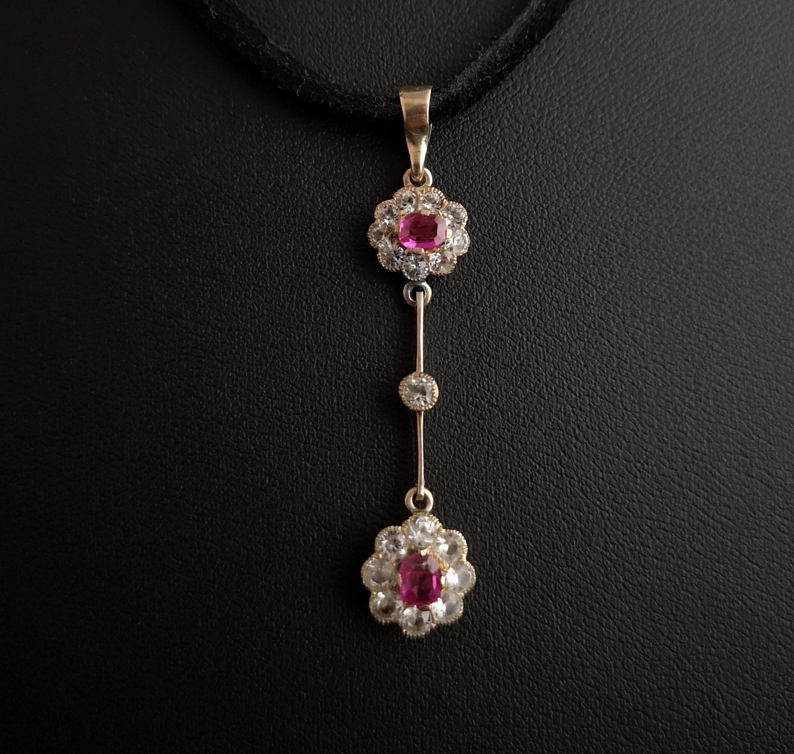 Art Nouveau Ruby & Zircon Drop Pendant, Floral