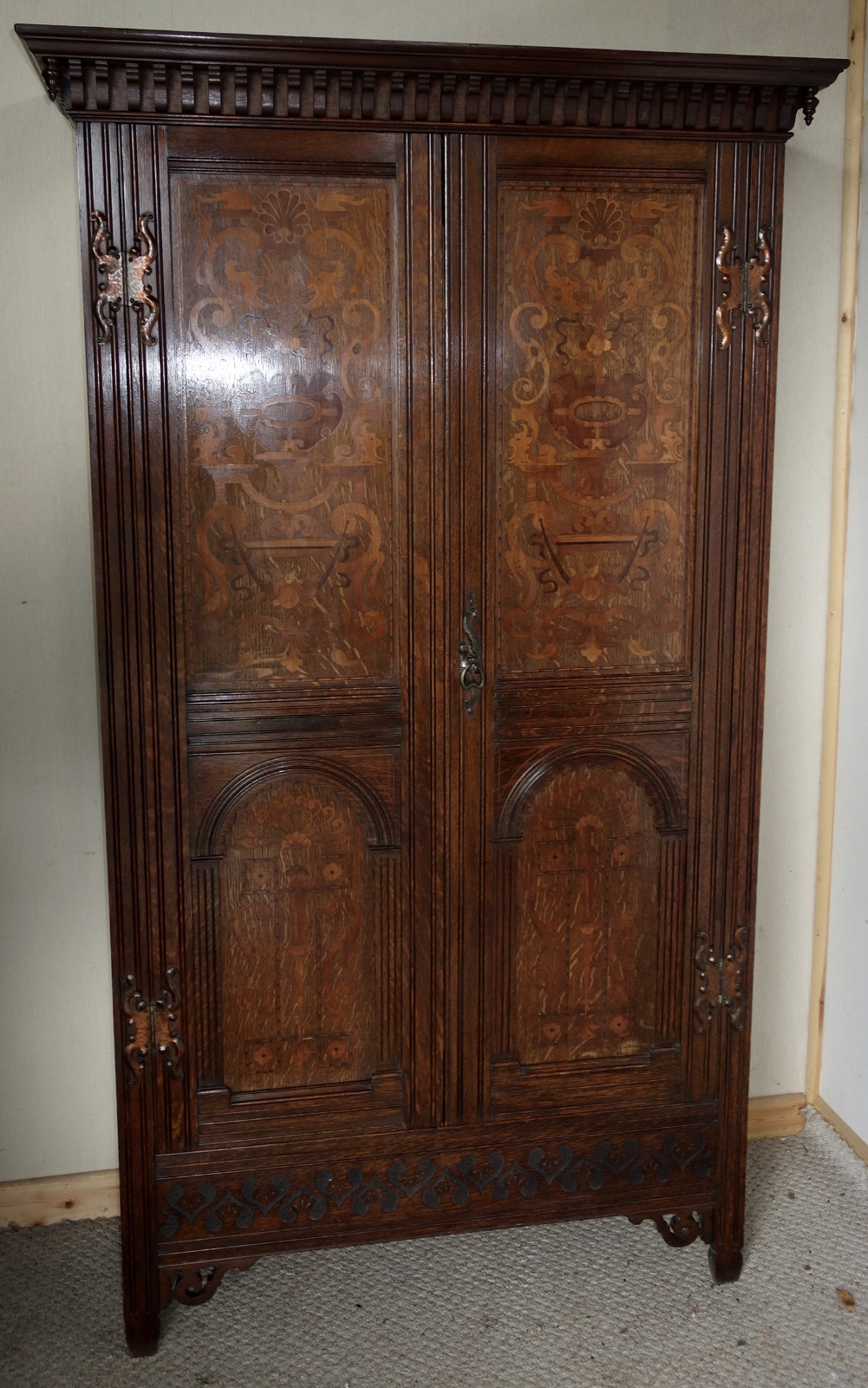 Art Nouveau Shapland & Petter Oak Hall Wardrobe - inlay marquetry c.1910 (1 of 1)