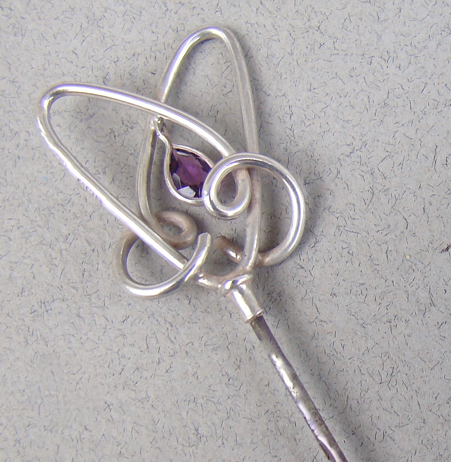 Art Nouveau Silver & Amethyst Hatpin by Joseph Walton, Birmingham 1908
