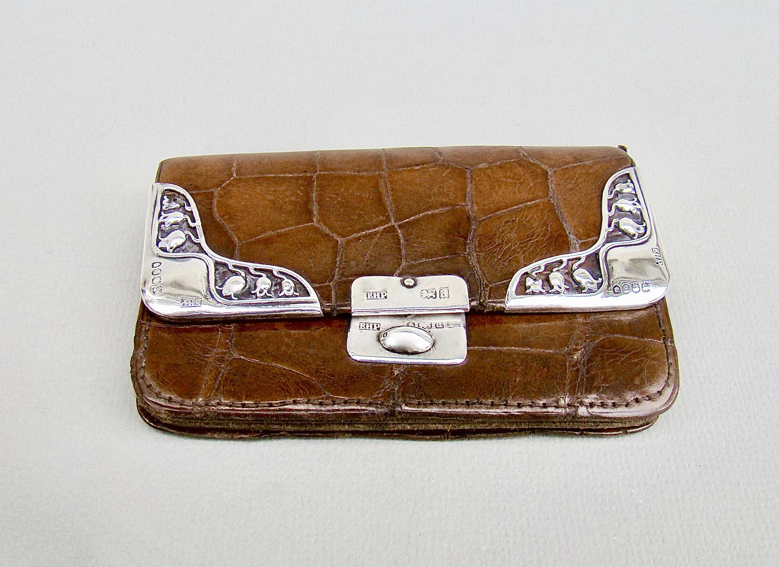 Art Nouveau Silver & Crocodile Skin Small Purse by Eugene Posen, London 1900