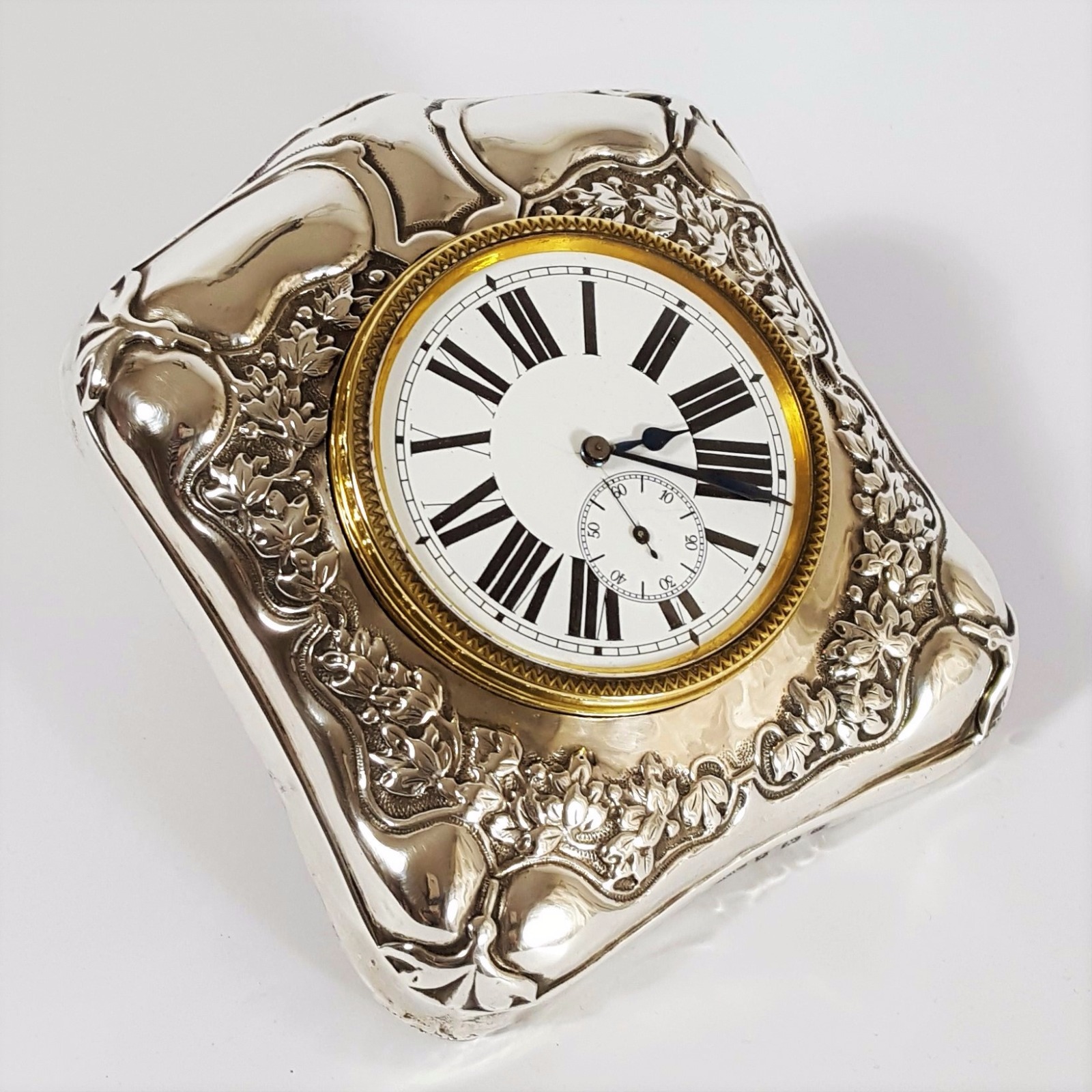 Art Nouveau Silver Framed Easel Travel Clock 1900