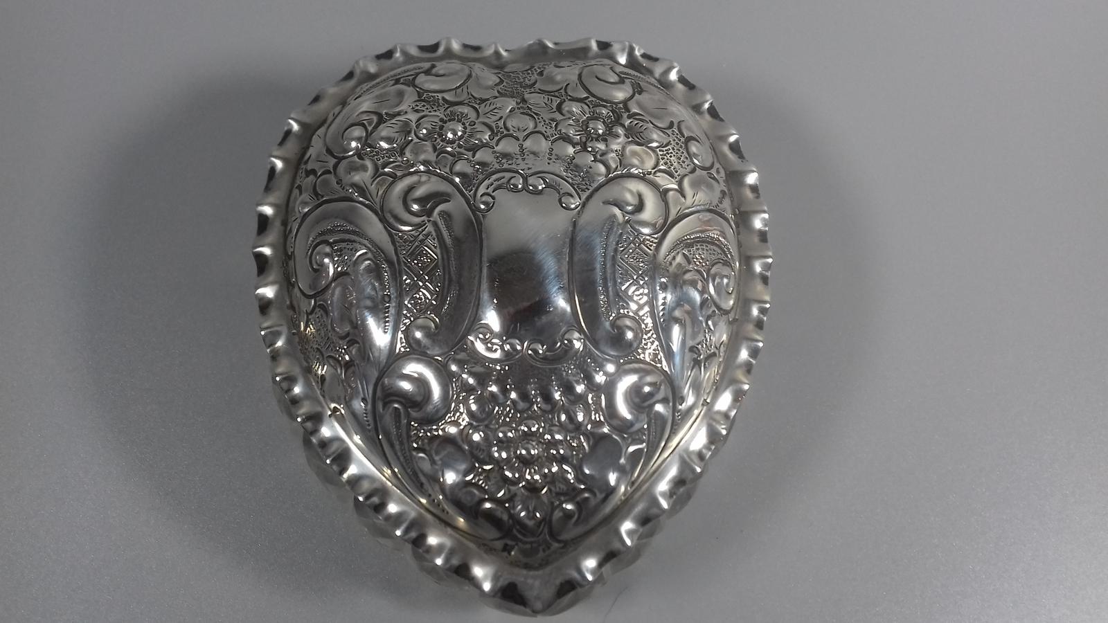 Art Nouveau silver repousse top cut glass heart vanity trinket box jar 1902