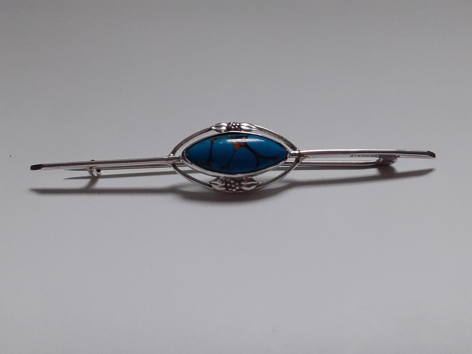 Art Nouveau Silver & Turquoise Bar Brooch