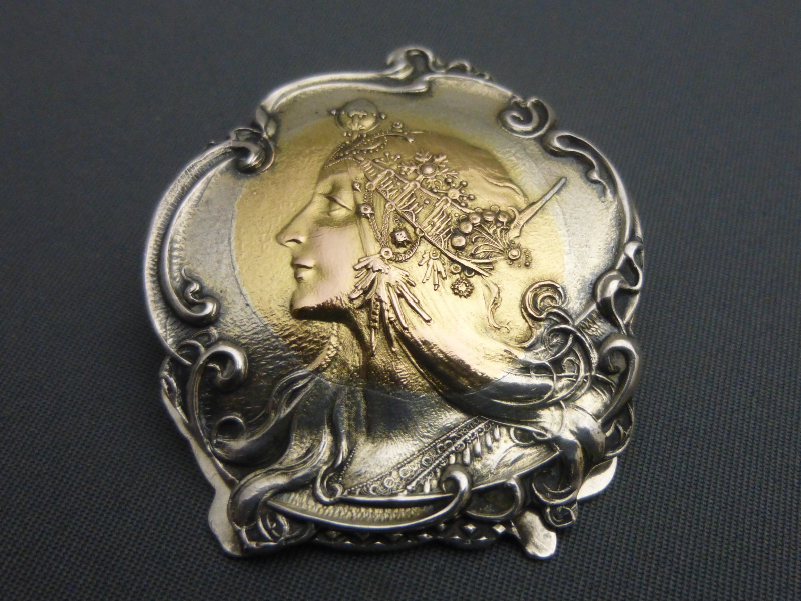 Art Nouveau Sterling Silver & 14ct Gold Money Clip