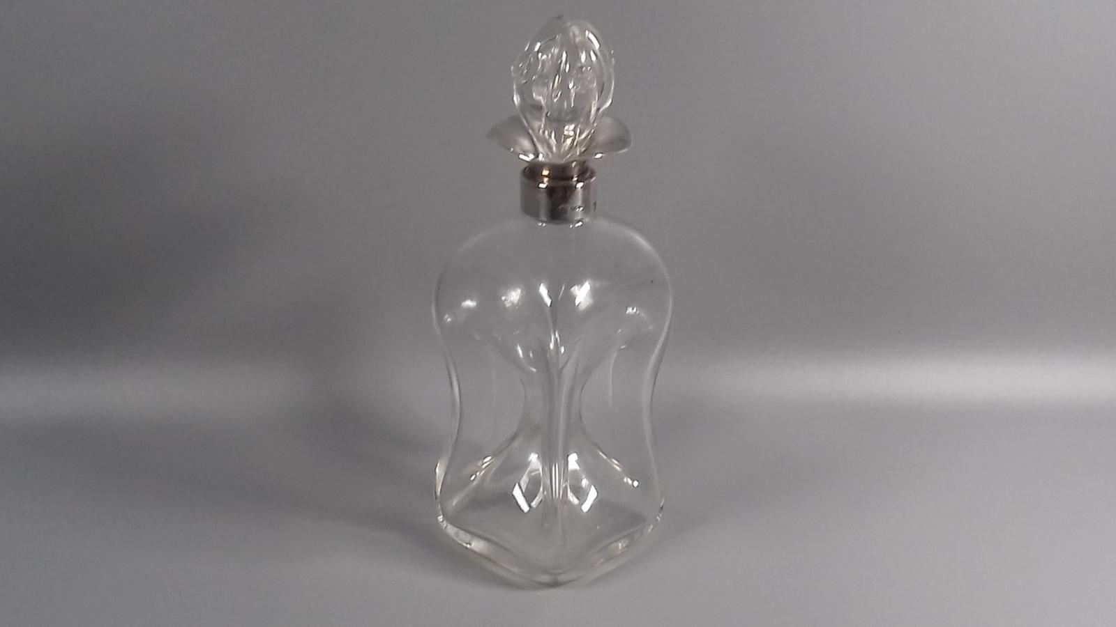 Art Nouveau Sterling Silver Mount Glass Large Glug Spirit Decanter Bottle 1904
