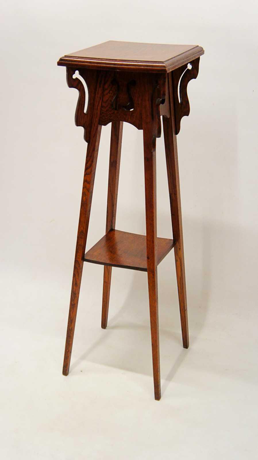 Art Nouveau Two Tier Oak Pedestal or Plant Stand