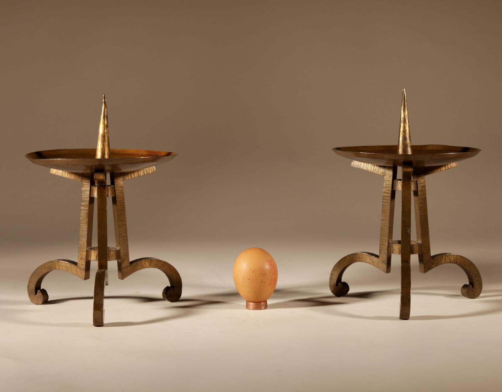 Art Nouveau/art Deco Dutch School Rare Wrought Brass Pair Of Pricket Candlesticks