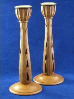 Arthur Simpson of Kendal Arts and Crafts Oak Candlesticks c.1900