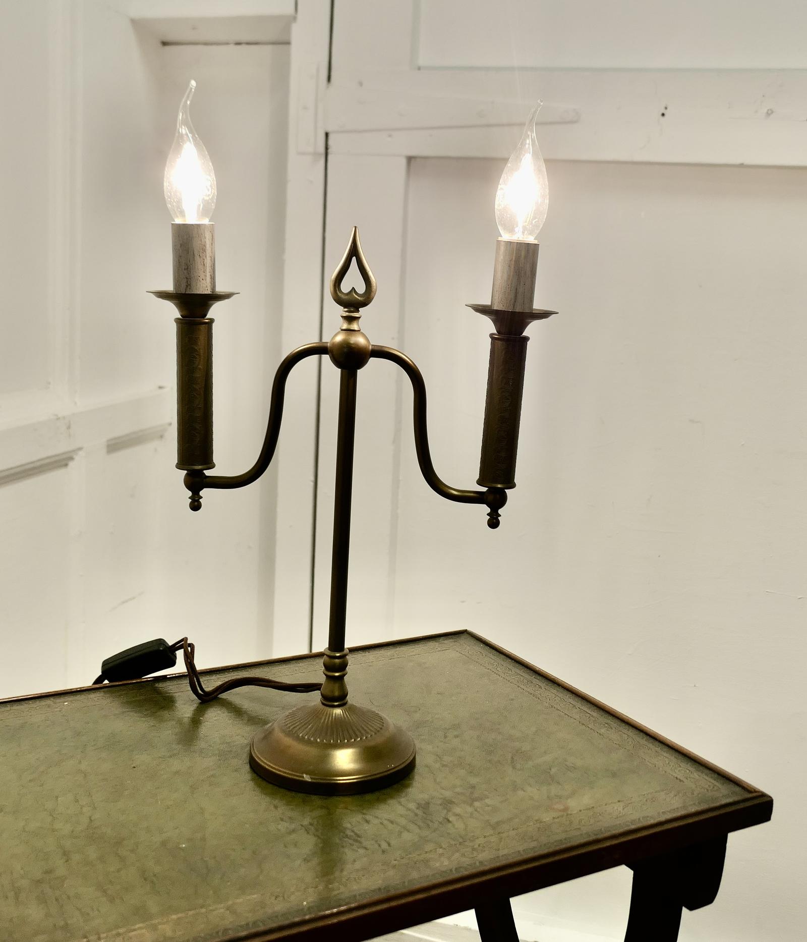 Arts and Crafts Brass Candelabra 2 Branch Lamp