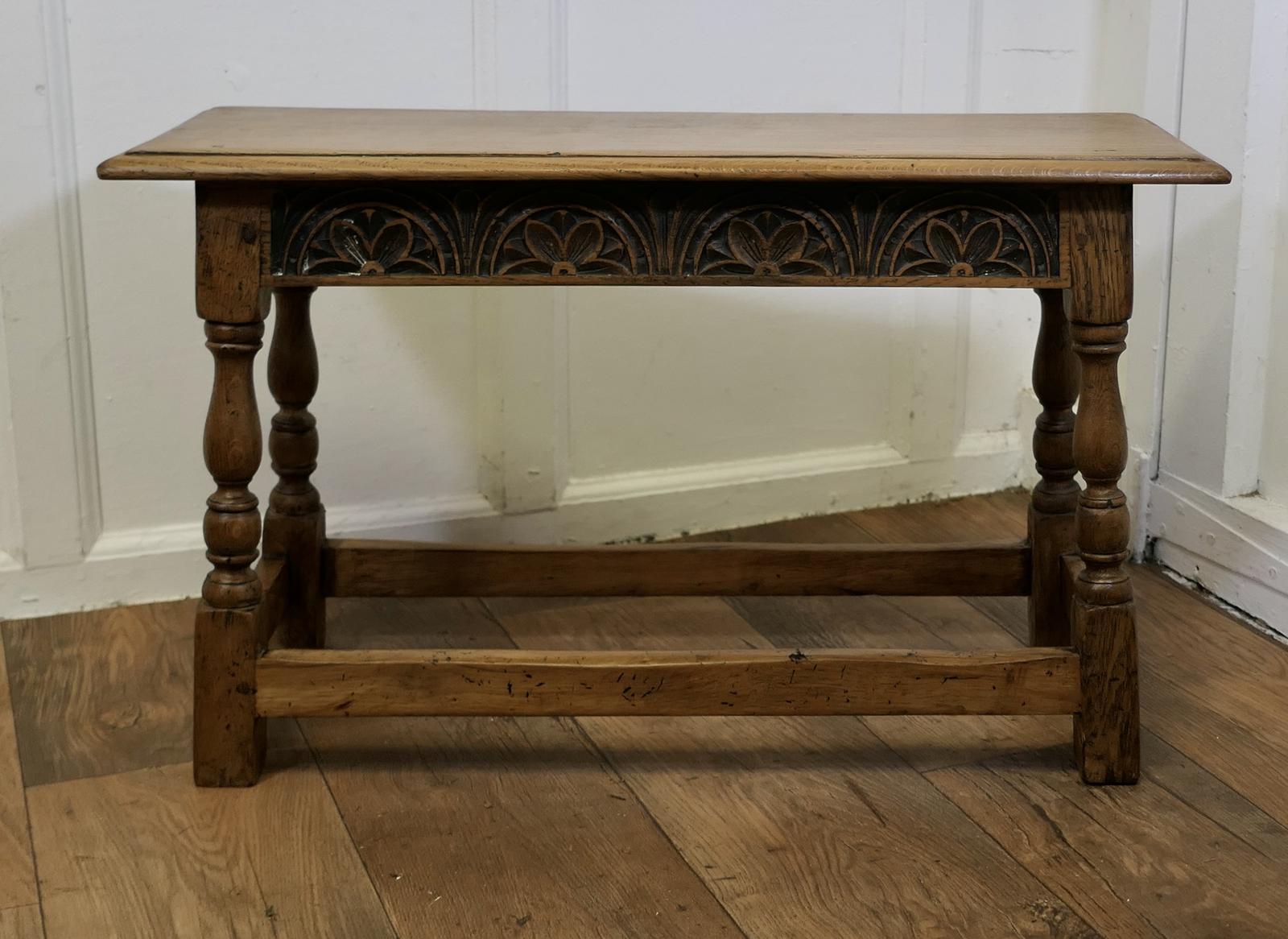 Arts and Crafts Carved Country Golden Oak Joint Style Window Seat, Hall Bench