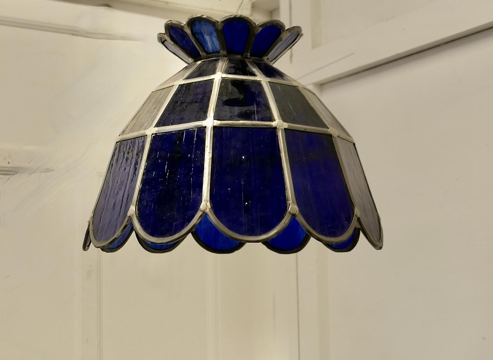 Arts and Crafts Cobalt Blue Leaded Glass Pendant Lamp