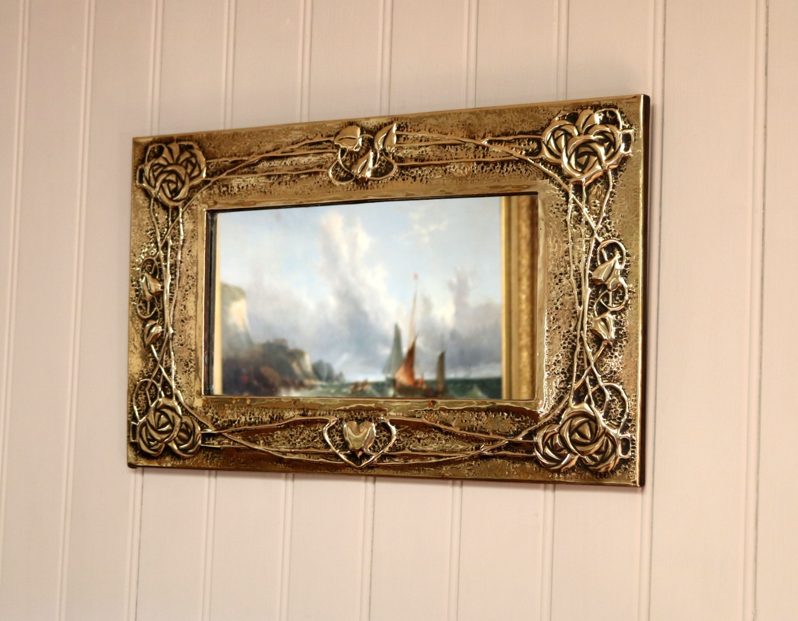 Arts and Crafts Embossed Brass Wall Mirror (1 of 1)