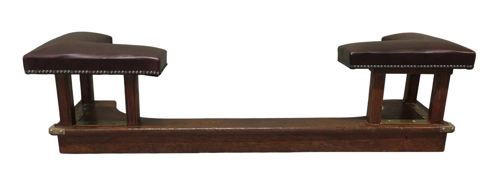 This is a very attractive fender seat, the fire surrounding seat is in studded Brown Leather, it is set on a chunky oak base with brass corners