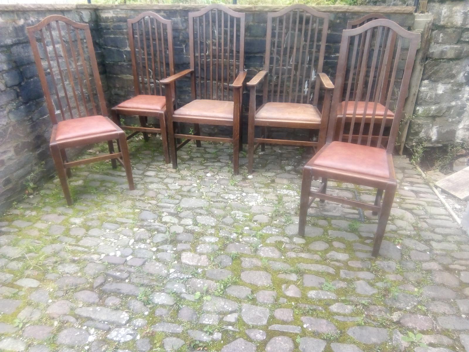 Arts and crafts oak set of chairs