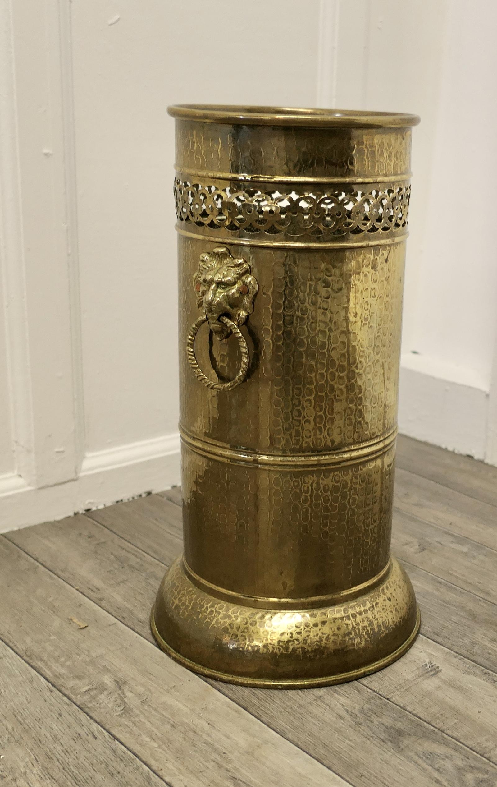 Arts and Crafts Pierced Brass Stick Stand, Umbrella Stand