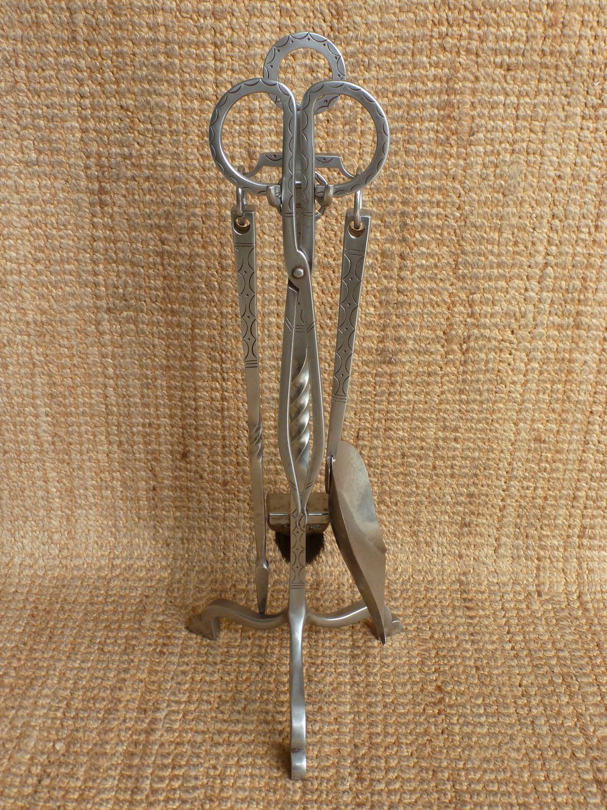 Arts & Crafts Archibald Carne Wrought Steel Companion Set Fire Irons - Cornish Truro c.1930