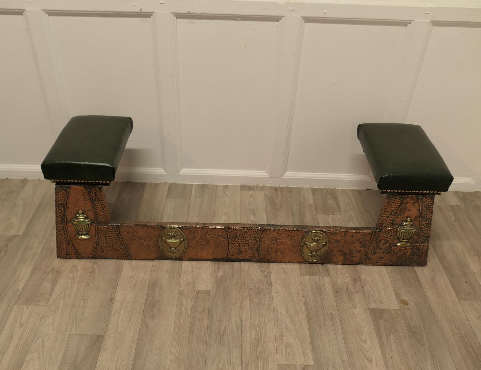 Arts & Crafts Beaten Copper & Brass Club Fender, Inglenook Fireside Seat