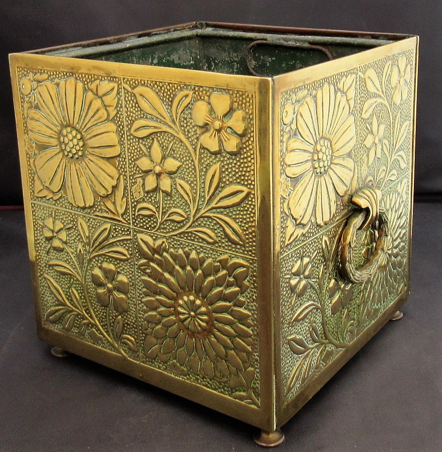 Arts & Crafts Brass Jardiniere, Original Liner, William Morris Style Design, 1878 Mark