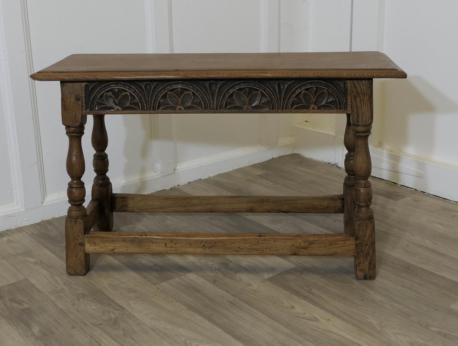 Arts & Crafts Carved Country Golden Oak Joint Stool