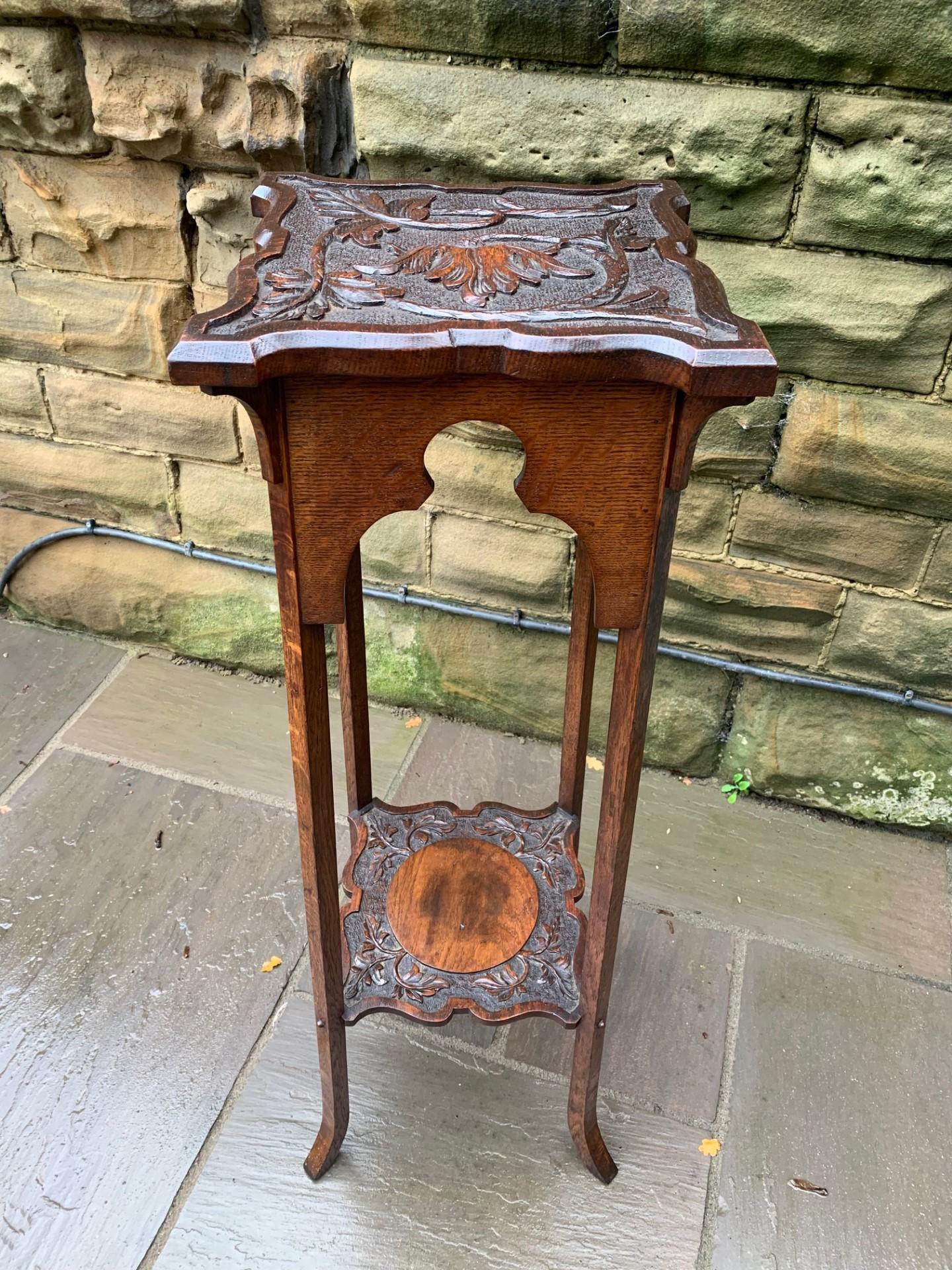 Arts & Crafts Carved Oak Plant Stand Torchiere