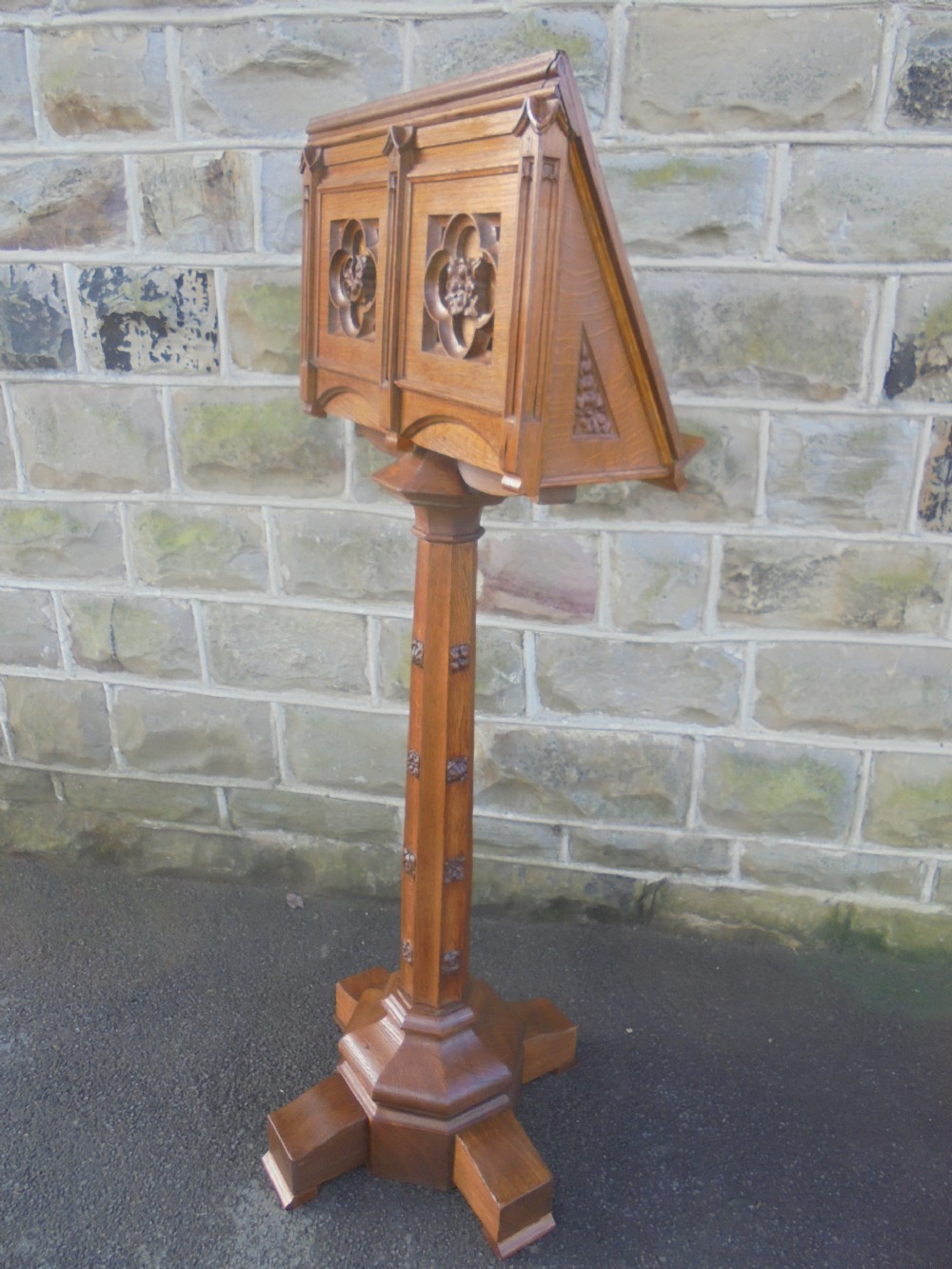Arts & Crafts Carved Oak Reading Stand Lectern