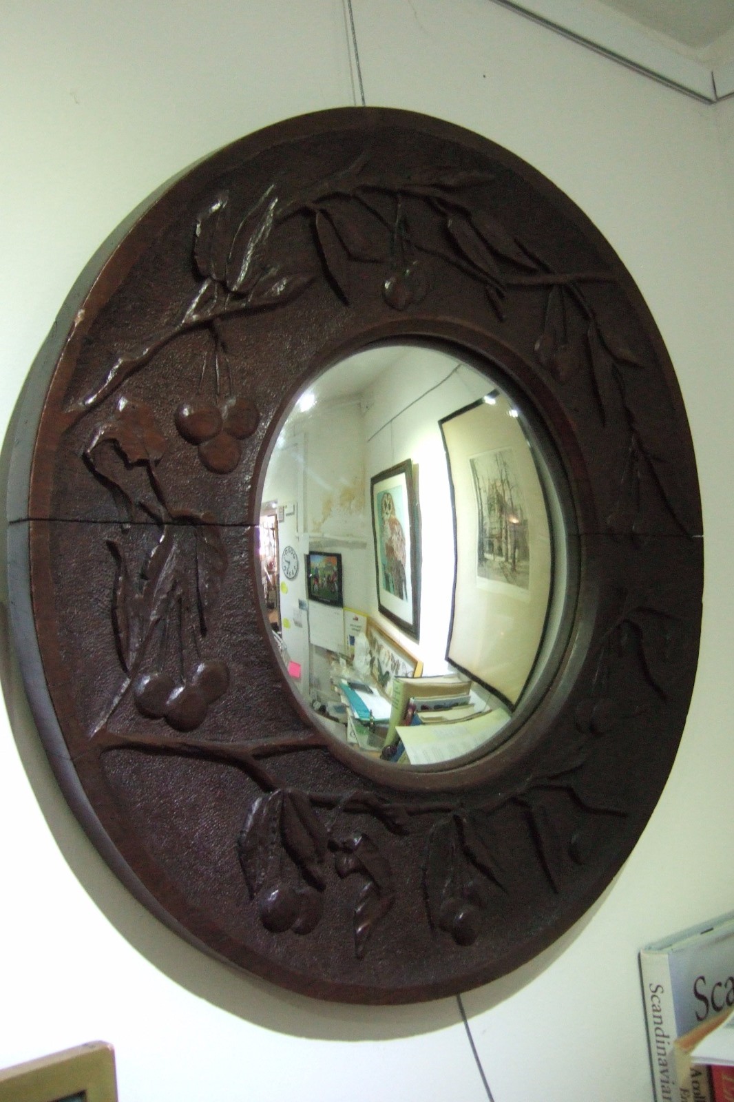 Arts & Crafts Circular Mirror Carved with Cherries (1 of 1)