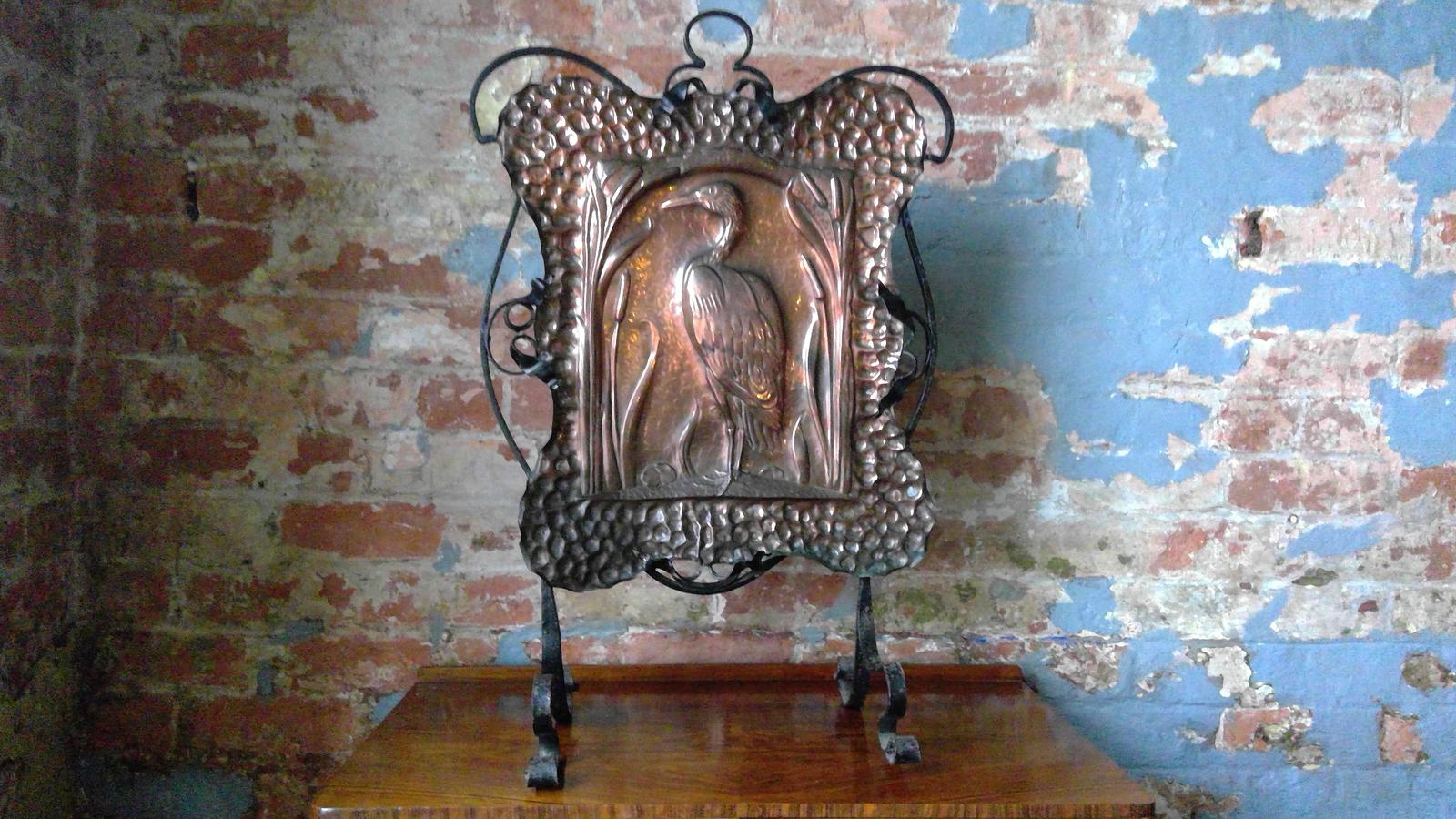 Arts & Crafts Copper Embossed Fire Screen