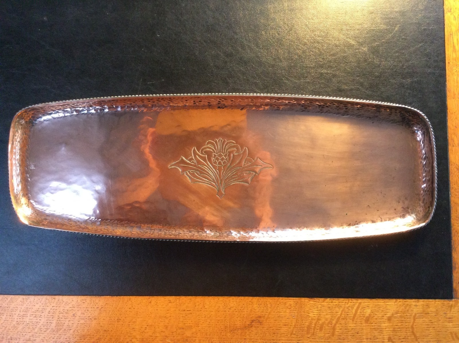 Arts & Crafts Copper Salver with Scottish Thistle Motif by Art Metal Worker Hugh Wallis (1871-1943)