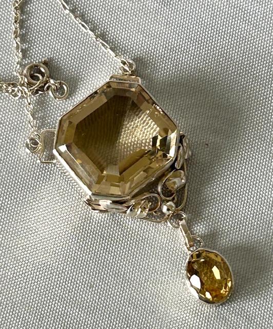 Arts & Crafts Edwardian Silver & Citrine Pendant Necklace