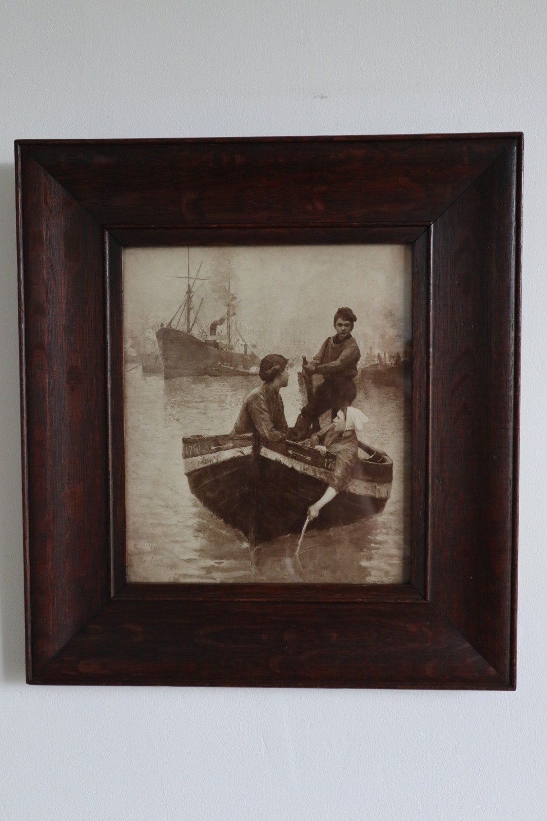 Arts & Crafts, Eugene Laurent Vail, Original Dark Oak Framed Print of "with the Tide" 1886. (1 of 8)