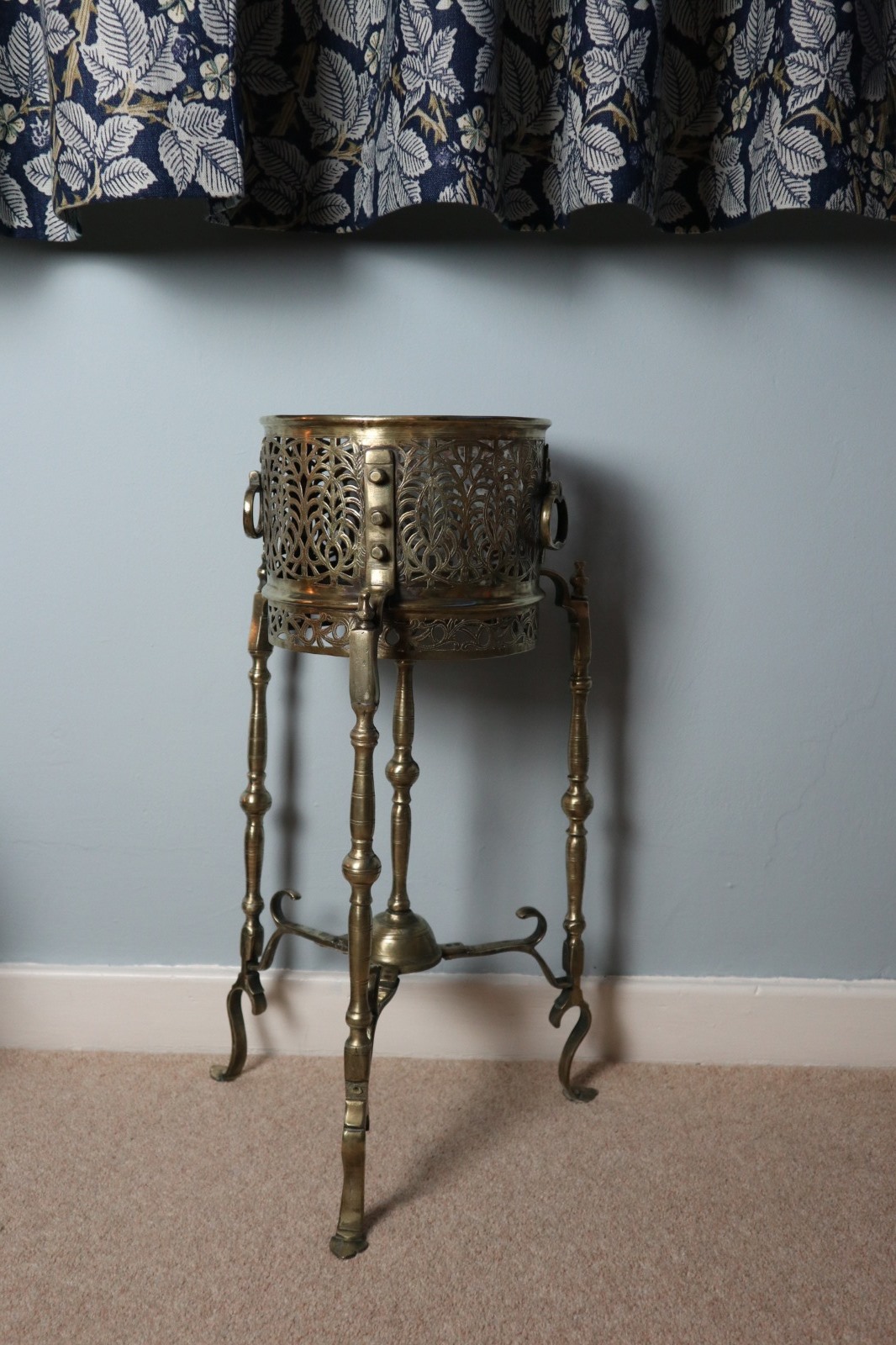 Arts & Crafts / Gothic Revival Brass Jardiniere / Plant Stand / Naturalistic Fretwork Decoration c.1860-1900 (1 of 1)