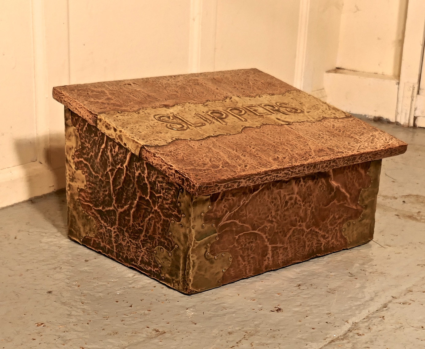 Arts & Crafts Hand Beaten Copper & Brass Fireside Slipper Box