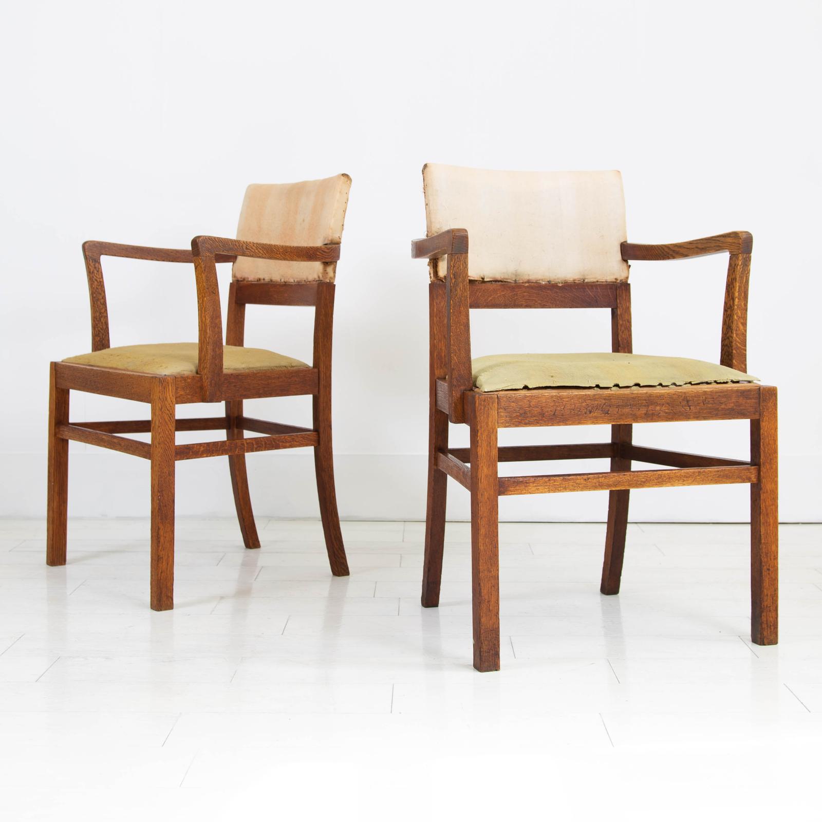 Arts & Crafts Heals of London Oak Armchair Elbow - We Have 2