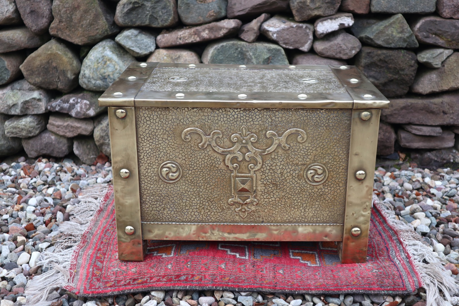 Arts & Crafts Large Brass Fire Box with Roundels and Decoration (Logs/Turf/Coal) Early 20th Century