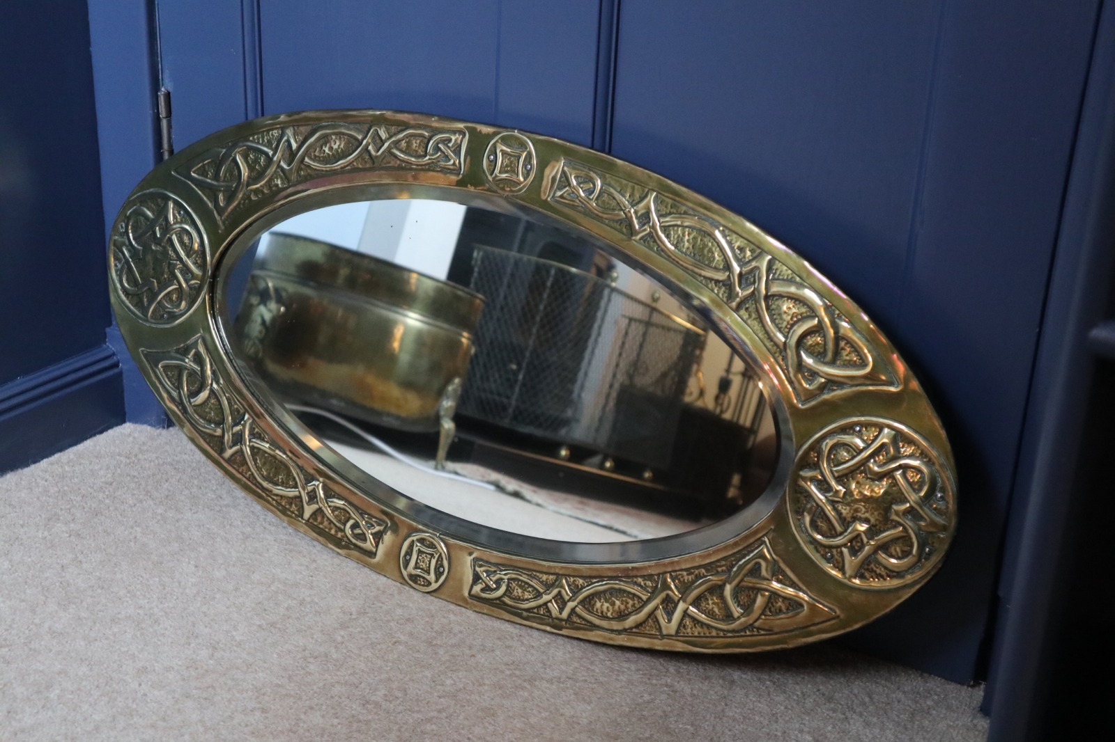 Arts & Crafts, Large Celtic Knotwork Repoussé  Brass Oval Wall / Overmantle Mirror 'Scottish School in the Style of Margaret Gilmour' (1 of 1)