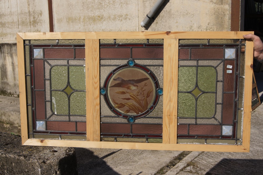 Arts & Crafts Leaded Glass Bird Window c.1900