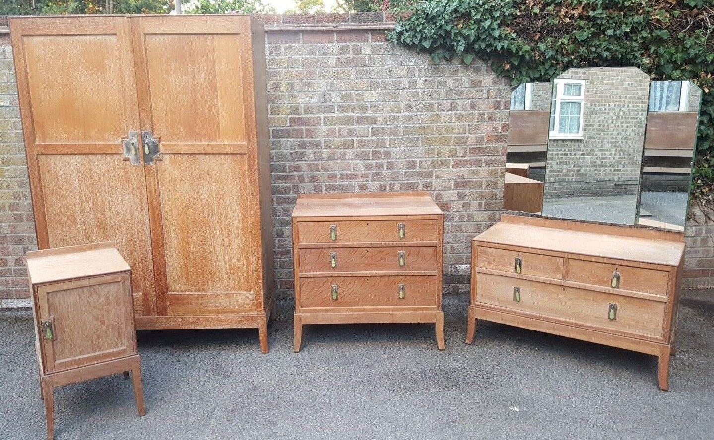 Arts & Crafts Limed Oak Bedroom Suite Heals C1920