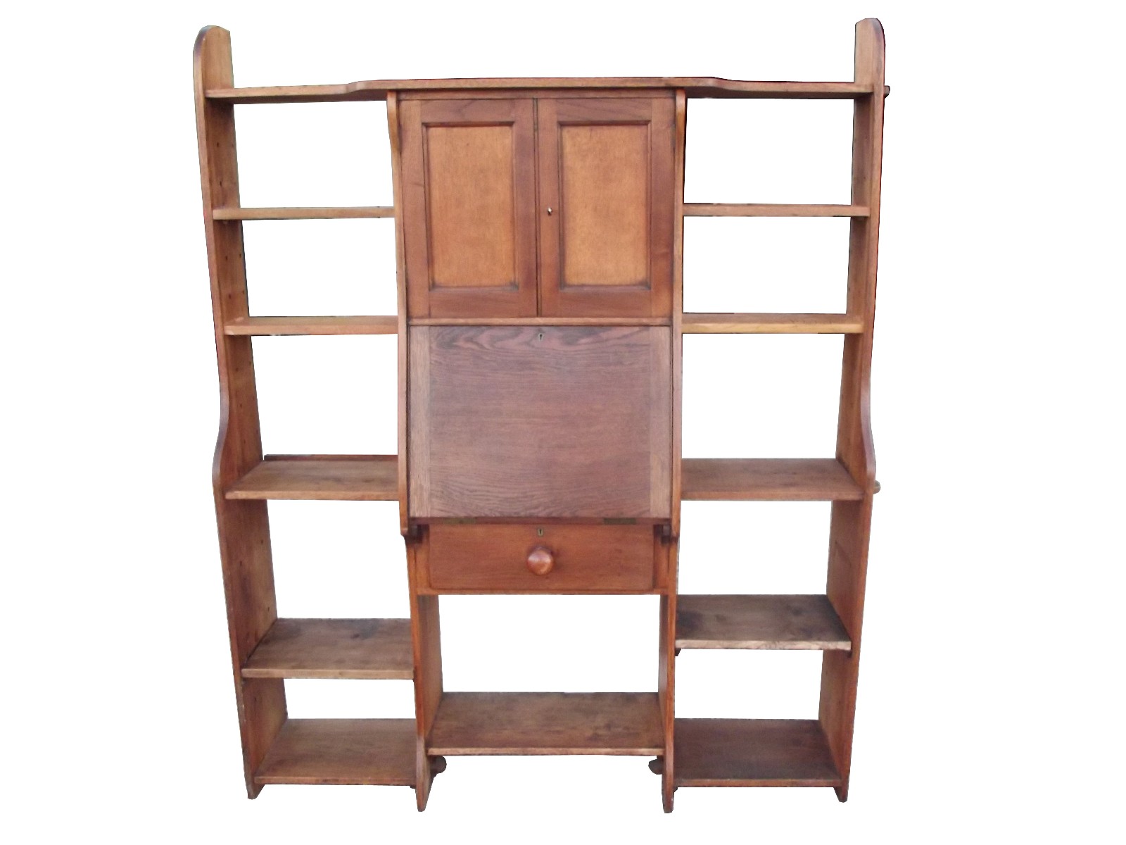 Arts & Crafts Oak Bureau Bookcase that Dismantles