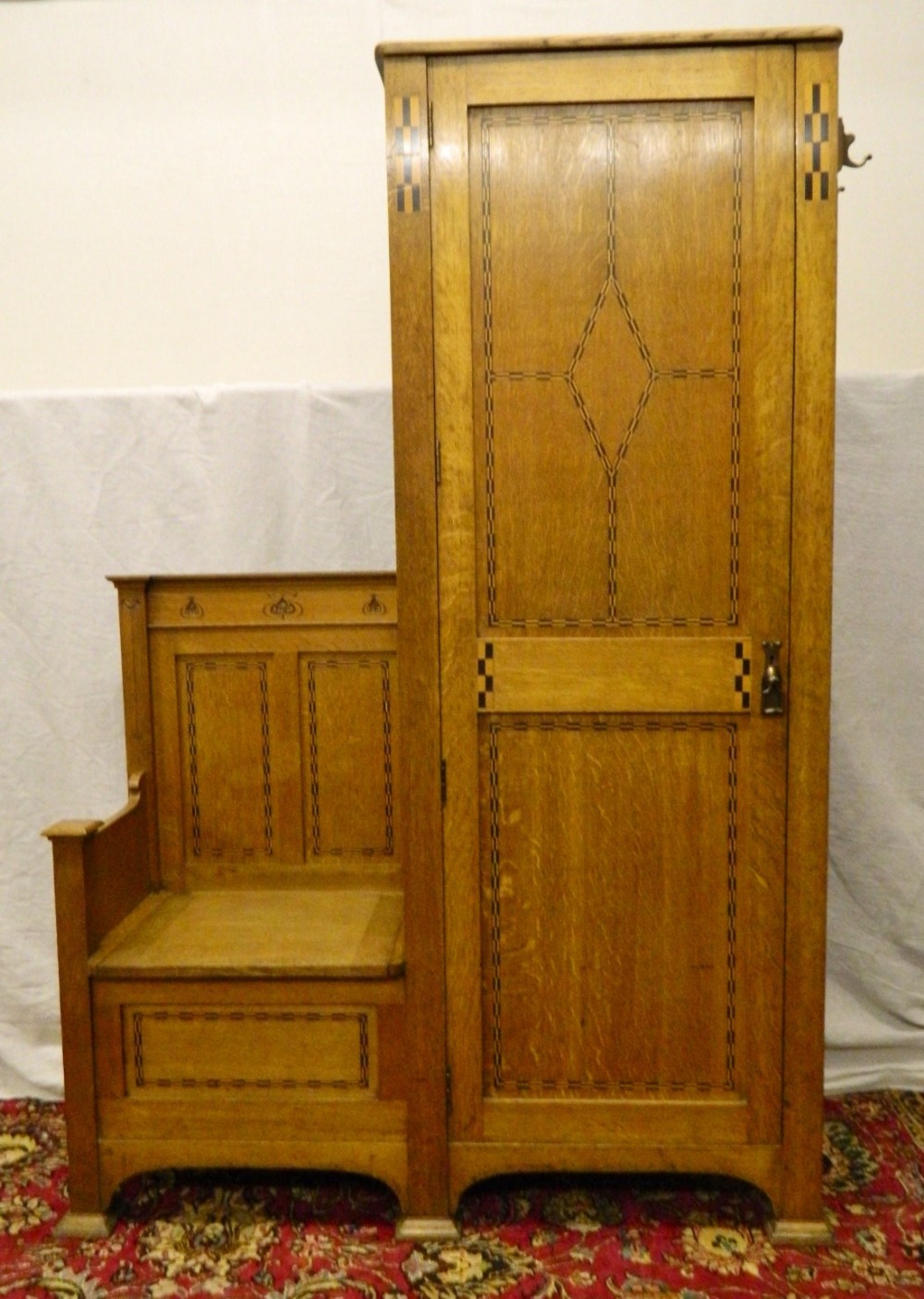 Arts & Crafts Oak Hall Cupboard with Hall Seat c.1900