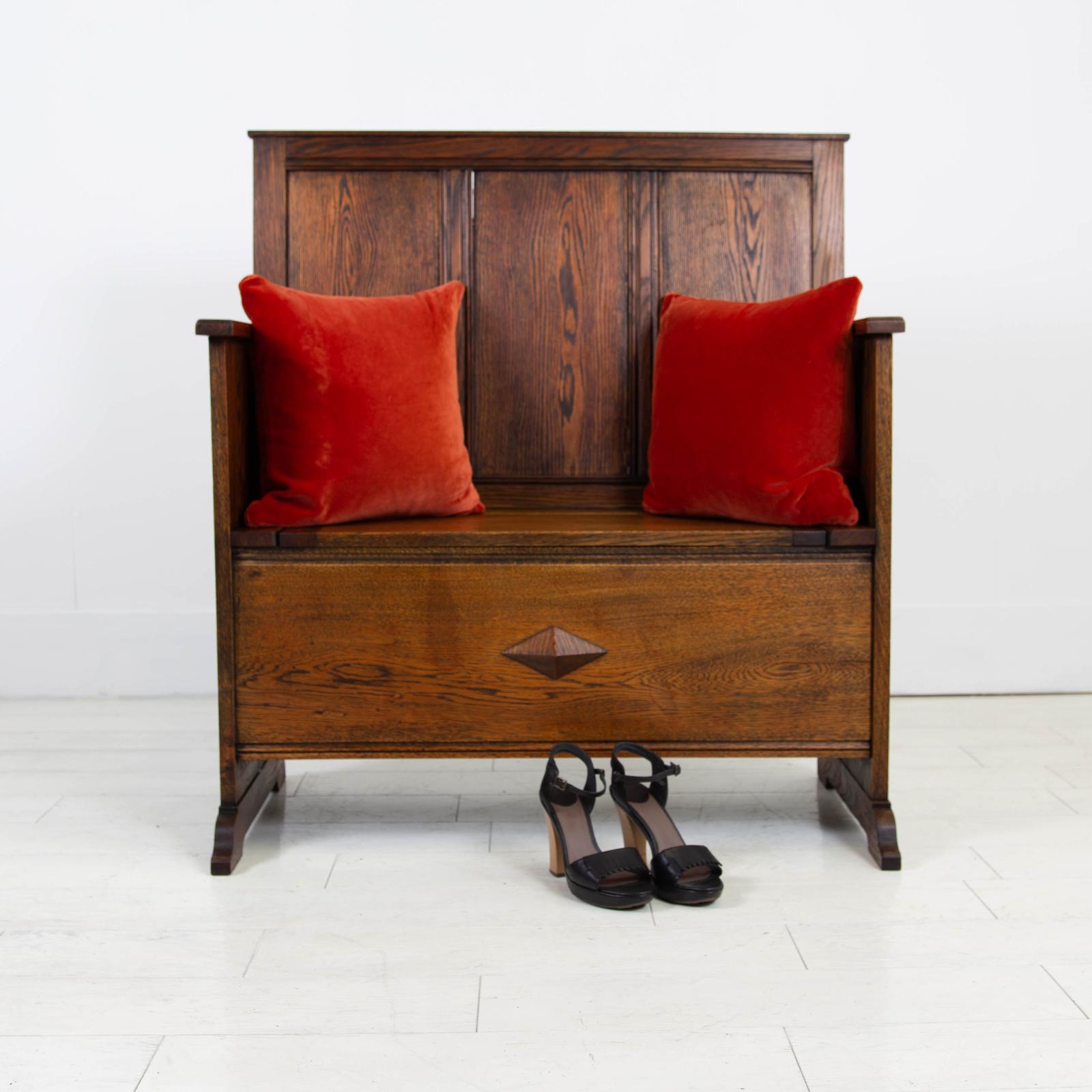 Arts & Crafts Oak Hall Seat with Storage c.1920