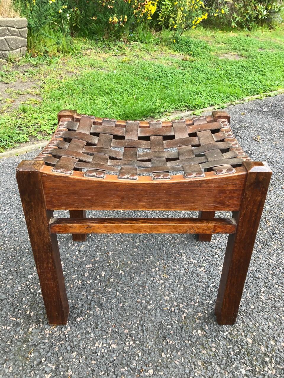 Arts & Crafts Oak & Leather Stool Arthur Simpson