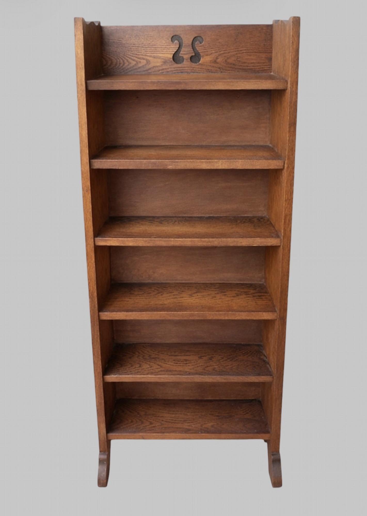 Arts & Crafts Oak Open Bookcase with Decorative Cut-out | Early 20th Century