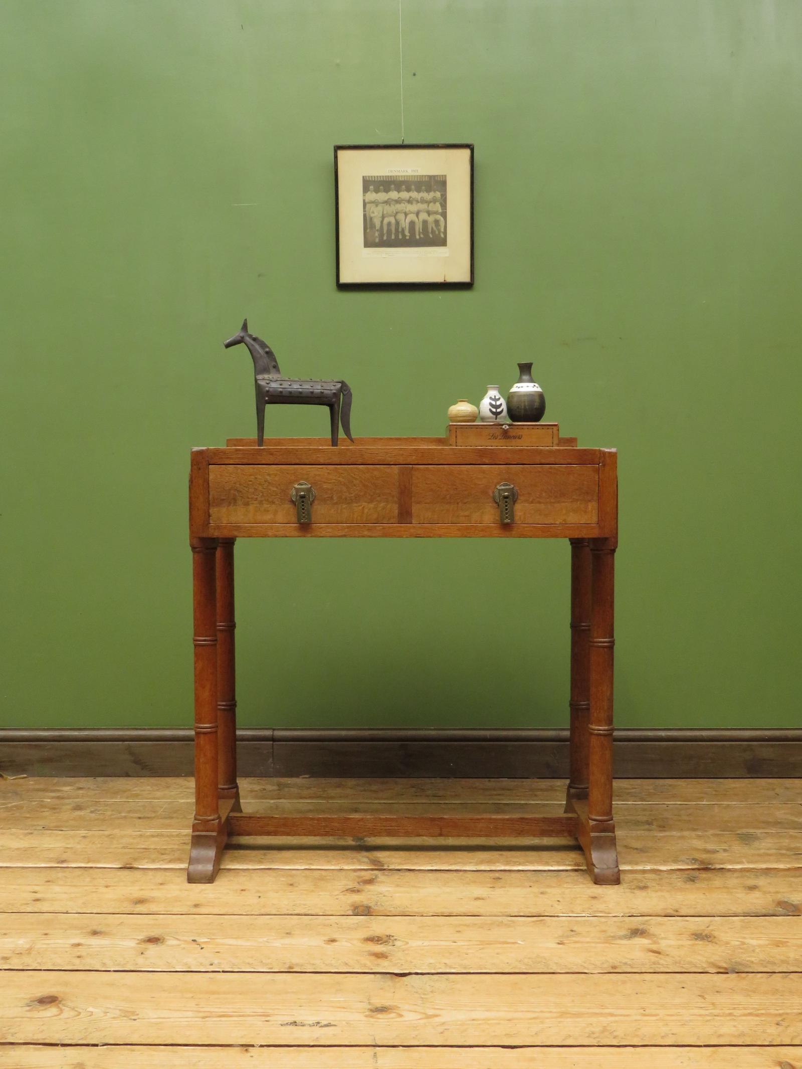 Arts & Crafts Oak Side Table, Writing Table with Drawer