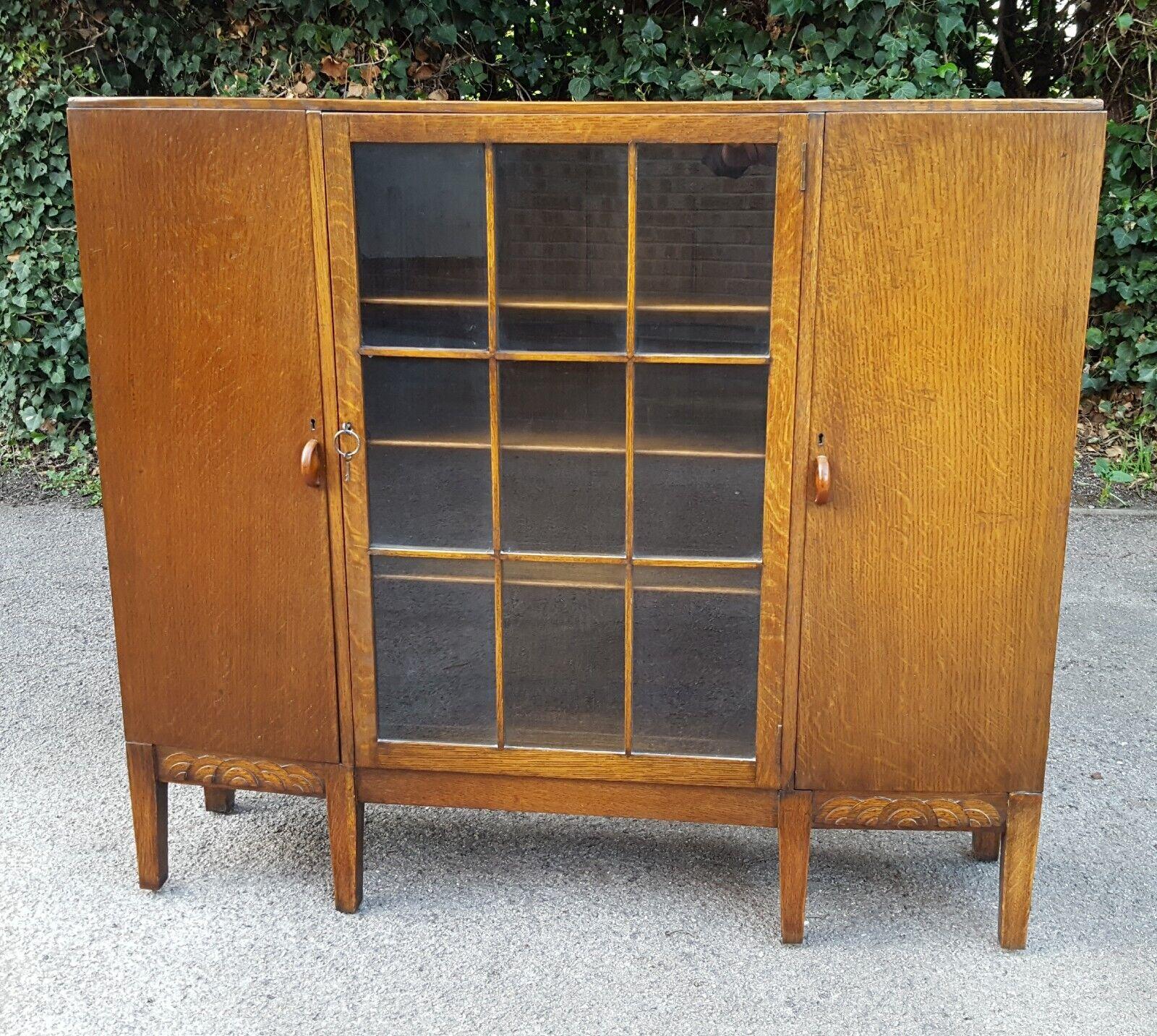 Arts & Crafts Oak Three Door Bookcase Fyne Ladye